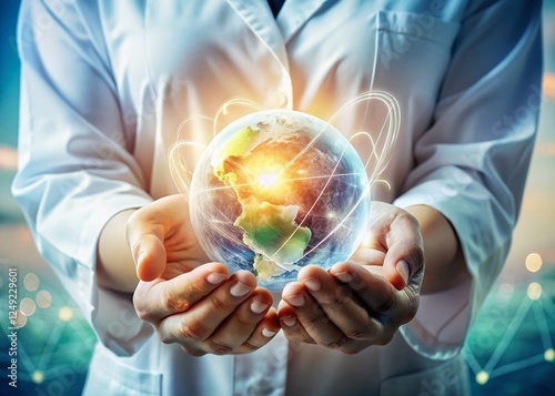 World Patient Safety Day: Healthcare Hands Protecting Fragile Globe Double Exposure