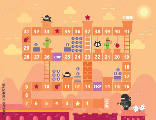 World tour board game template,Funny frame, ladders game, Vector illustrations.