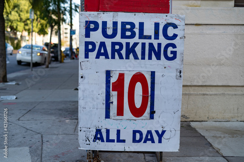 Worn out Public parking all day for $10 sign