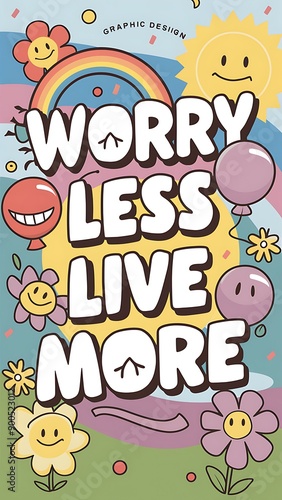 Worry Less Live More colorful background (T-shirt Design Motivational Quote, Illustration ,Typography)