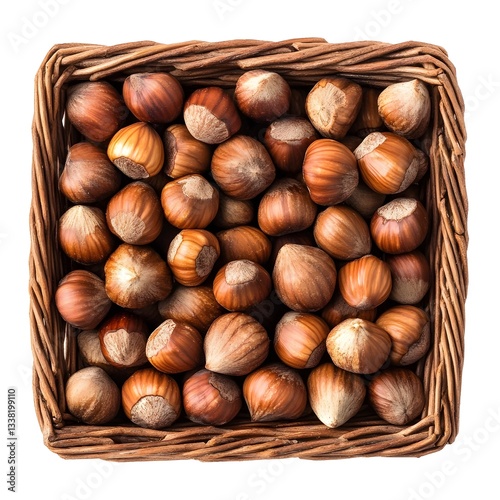 Woven Basket Filled with an Abundance of Hazelnuts in a Natural Rustic Still Life Composition