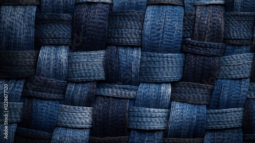 Woven Denim Texture Rich Deep Blues Intricate Pattern. AI Generated