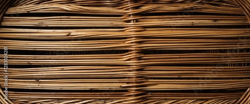 Woven wicker basket texture close-up showing natural wood fibers and intricate patterns in warm brown tones