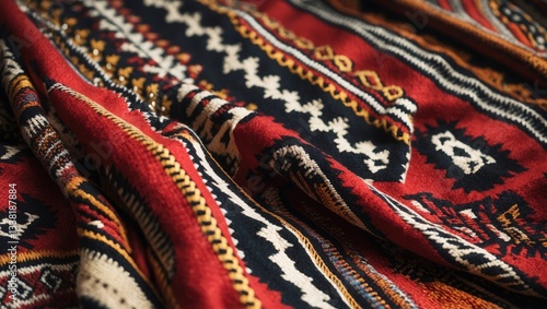Woven Wool multicolor Andean textile, traditional Fabric Background colorful Texture.