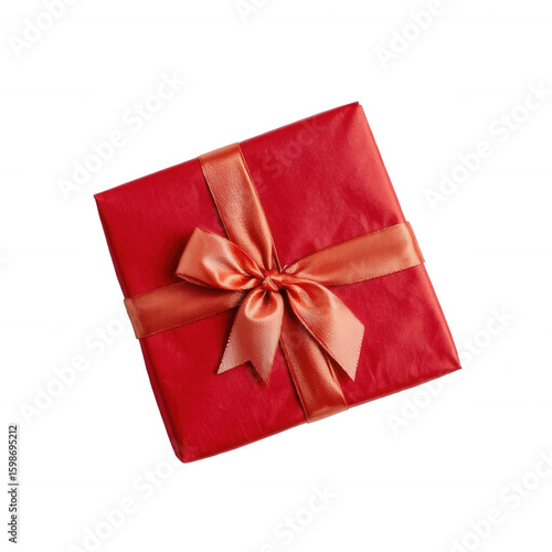Wrapped red gift box with orange ribbon on white background
