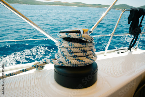 Wrapped sailing rope on a yacht. Sail and yachting concept.