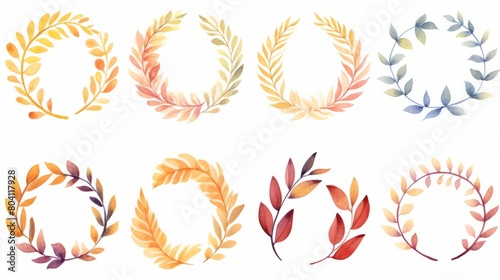 Wreath of colorful autumn fall leaves isolated on white background. Watercolour illustration with place for save date, text, photo. Fall, autumn, Thanksgiving