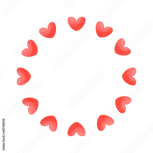 Wreath of hearts. Round pattern of hearts, vignette of pink hearts. Isolated design element for Valentine's day. Vector flat illustration for greeting card, banner, social media design.