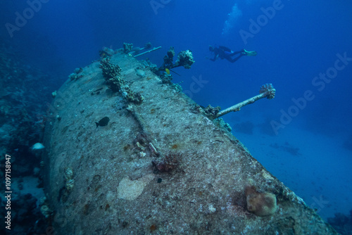 Wreck of sailing yacht near Abu Galawa dive site in Red Sea, Egypt
