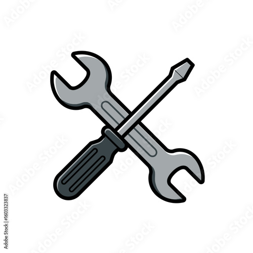 Wrench and Screwdriver Crossed Cartoon Illustration for Repair or Maintenance