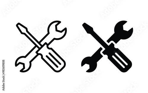 Wrench and screwdriver icon, repair sign vector