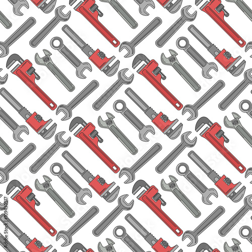 Wrenchs vector repeatable pattern for labor day. Style is flat wrench symbols on a white background. Vector illustration.
