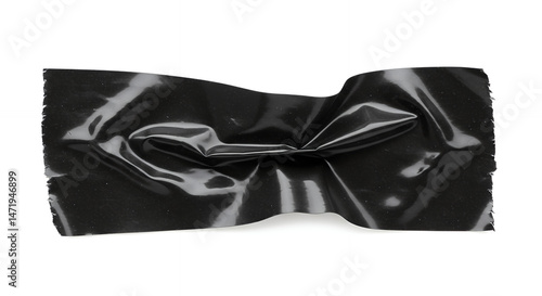 Wrinkled Black Duct Tape: Glossy Texture, Torn Edges ? Isolated Patch for Creative Uses!