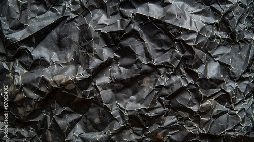 Wrinkled black old wrinkled paper. Dusty cardboard wrapping
