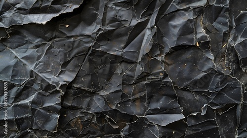 Wrinkled black old wrinkled paper. Dusty cardboard wrapping