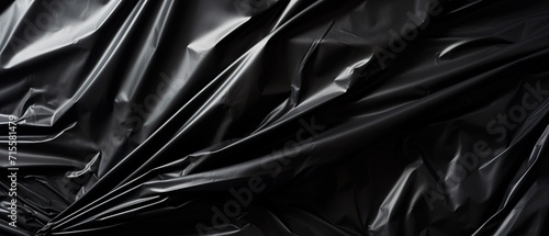 Wrinkled black plastic bag. Black garbage bag texture. Abstract black background.