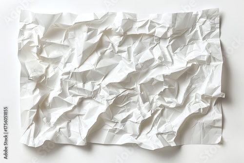 Wrinkled paper, overhead, for ideas, waste, or office backgrounds on white surface