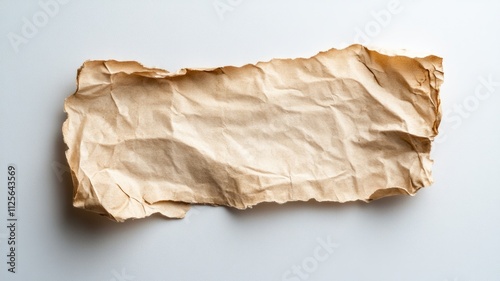 Wrinkled piece of brown parchment paper isolated on white background
