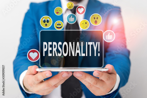 Writing note showing Personality. Business concept for combination characteristics that form individuals character