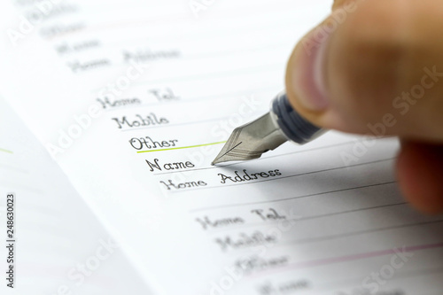 Writing the name on a paper with a pen using for concept of Namesake day.