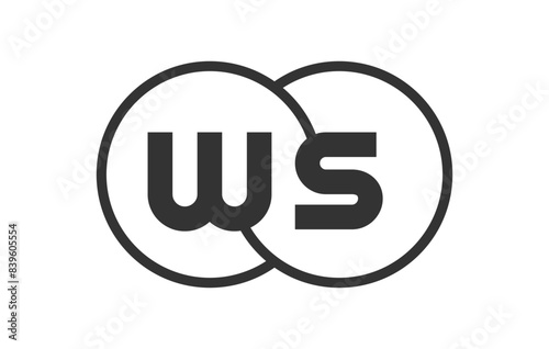 WS business company emblem with outline rounds and letters w s. Logo template of two merged circles for brand identity, logotype. Vector Infinity symbol