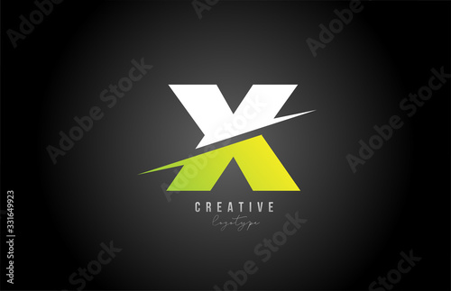 X white and green letter logo alphabet icon design for business and company