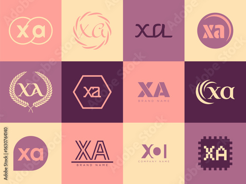 XA logo company template. Letter x and a logotype. Set different classic serif lettering and modern bold text with design elements. Initial font typography.
