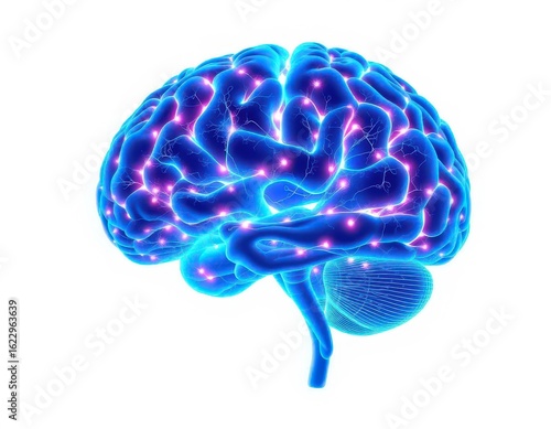 x-default Human Brain Anatomy with Neural Signals Stock Photo