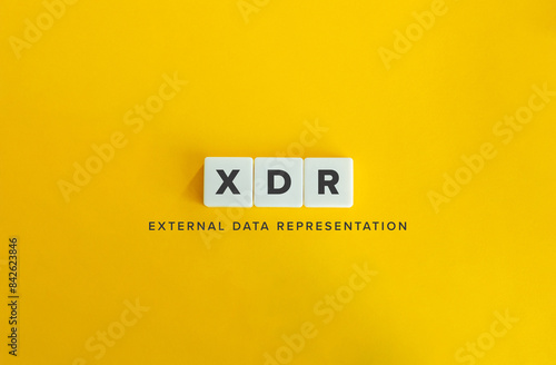 XDR (External Data Representation) Acronym and Banner. Text on Block Letter Tiles on Flat Background. Minimalist Aesthetics.