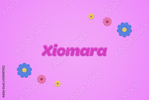 Xiomara female girl name illustration in pink with blossoms, flowers