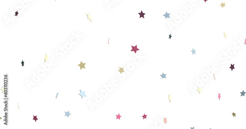XMAS Banner with colored decoration. Festive border with falling glitter dust and stars.