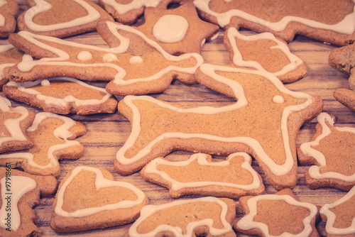 Xmas cookie figures on wood