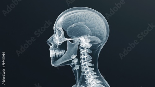 X-ray head scan, showing cranium and facial bones, 3D illustration