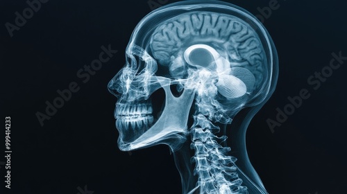 X-ray head scan, showing cranium and facial bones, 3D illustration