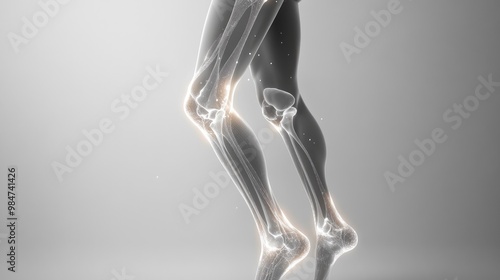X-ray image of human legs, showing knee and ankle joints in detail.