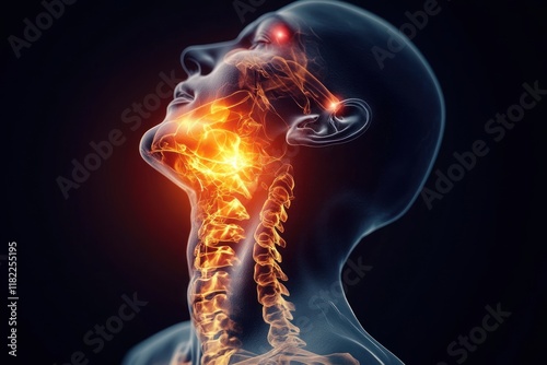 X-ray Neck Pain Anatomy, Glowing, Medical Illustration