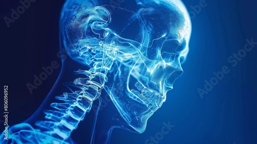 Xray style poster of bones with a deep blue background and glowing white bones, striking and scientific for any room