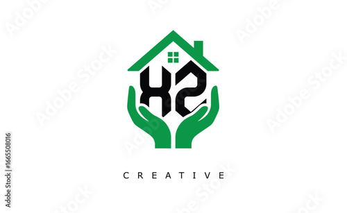 XZ Home Care Logo - Green House and Hand Symbol for Real Estate, Eco Housing & Modern Branding