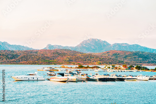Yachts on Mediterranean Sea on in Sardinia Italy