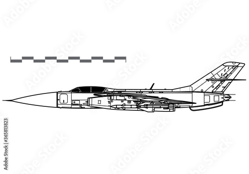Yakovlev Yak-28P Firebar. Vector drawing of supersonic interceptor. Side view. Image for illustration and infographics.