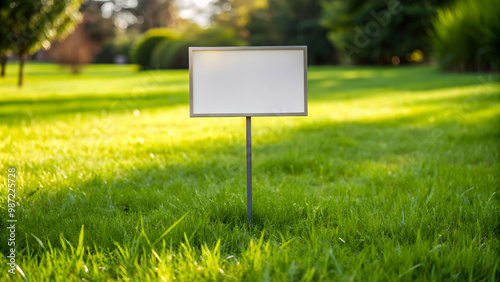 Yard sign on grass with copy space, temporary, blank, yard sign, grass, shallow depth of field, copy space