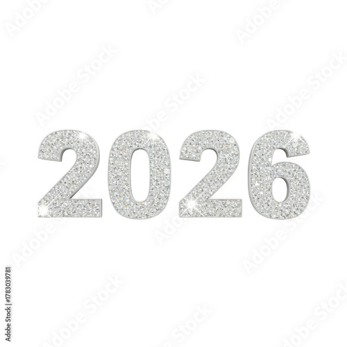 Year 2026 numbers with distressed texture isolated on transparent background