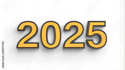 Yellow 2025 text with shadow effect on white background