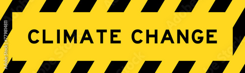 Yellow and black color with line striped label banner with word climate change