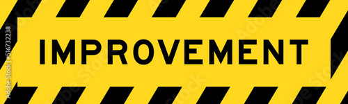 Yellow and black color with line striped label banner with word improvement