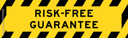 Yellow and black color with line striped label banner with word risk-free guarantee