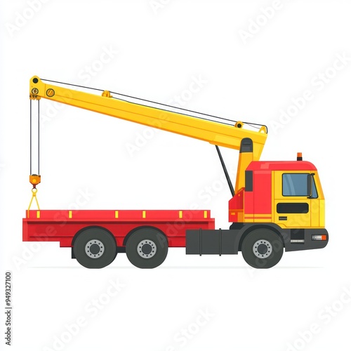 Yellow and Red Construction Crane Truck Illustration