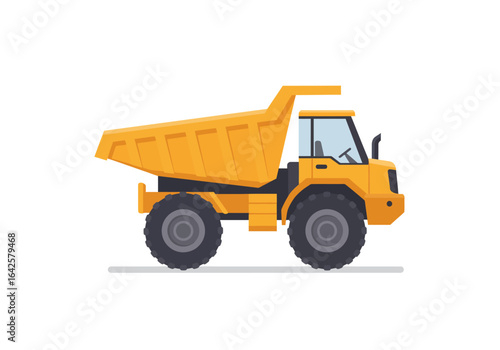 Yellow Articulated Dump Truck Illustration with Large Wheels and Bed.