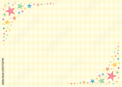 Yellow background with cute colorful stars and glitter decoration in watercolor style