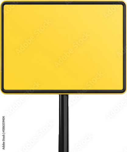 Yellow blank sign on pole, minimalist style. Communication and direction concept